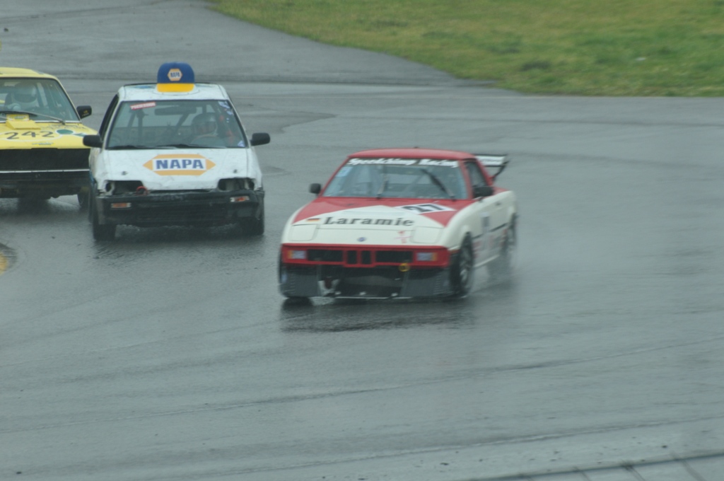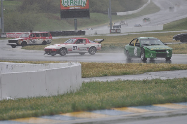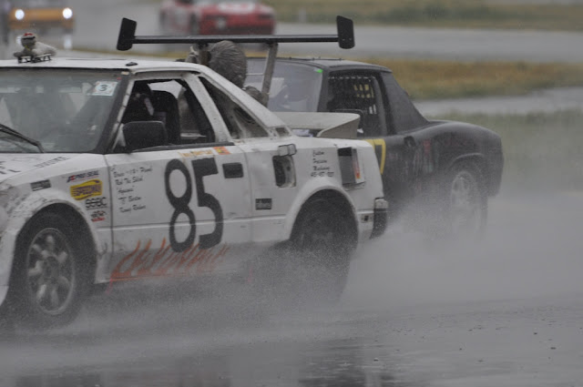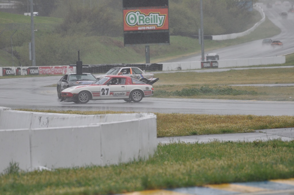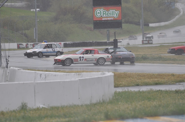 We decided to do short, 30-minute stints so that we'd all get a chance to get some track time in case the car broke down early. We actually finished the entire day on Saturday, with everyone getting to drive at least two stints. And we proved that our car will not be suffering from any maladies related to water...Our pit stops were miserably slow and completely uncoordinated, which contributed to less than desirable ratio of time on the track to time in the pits. Definitely some room for improvement. We also experienced some radio issue, which we need to work out before the next race...