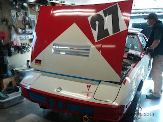 Test & tune turned out to be a bust as the car was not running well at all. The car ran one lap under it's own power, then the push truck had to bring us in (which smashed the hell out of Van's baby, the rear wing he'd put so much effort into). So much for the "DO NOT PUSH" sticker on the back of the car...